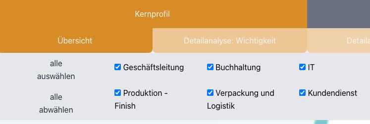 Man kann nicht alle Menschen über einen Kamm scheren. Mit der Filterfunktion beleuchten Sie die Situation in all den verschiedenen Bereichen Ihres Unternehmens.